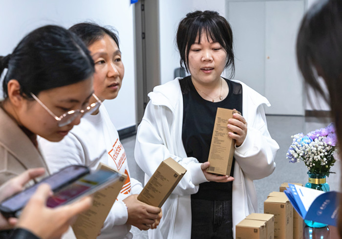 健步走结束后,大家集体前往公司大厅领取健步走礼品。