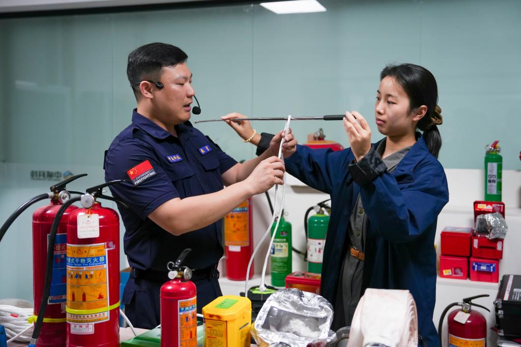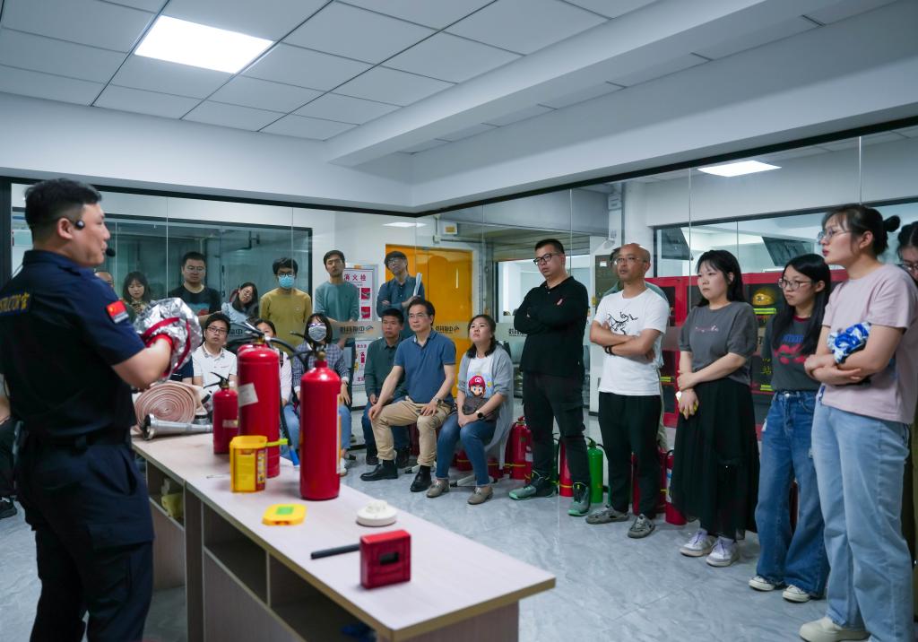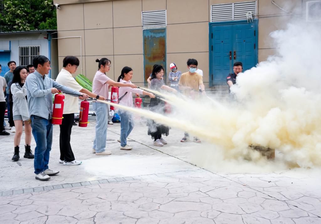 在消防教育实践基地,教官重点针对消防隐患检查、火灾预防、火灾报警、消防应急技能、常用灭火设备使用、喷淋设备的使用、易燃易爆溶剂引起的火灾消防注意事项、教师如何组织员工疏散等知识进行了讲解和演示。实战演练环节,每位教师进行了干粉灭火器灭火操作。