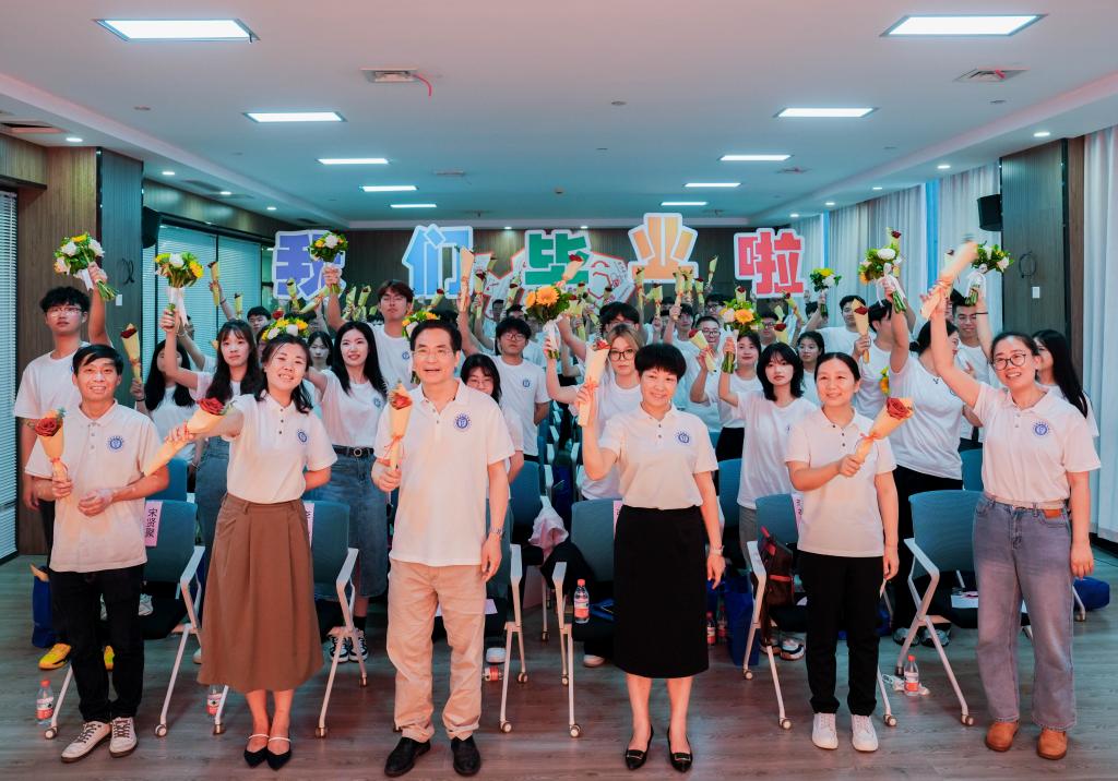 张梅芬为省级、校级优秀毕业生颁发证书,并为员工联络大使颁发聘书;高阳为全体毕业生送上毕业专属礼物;李娜为考取研究生的员工颁奖。