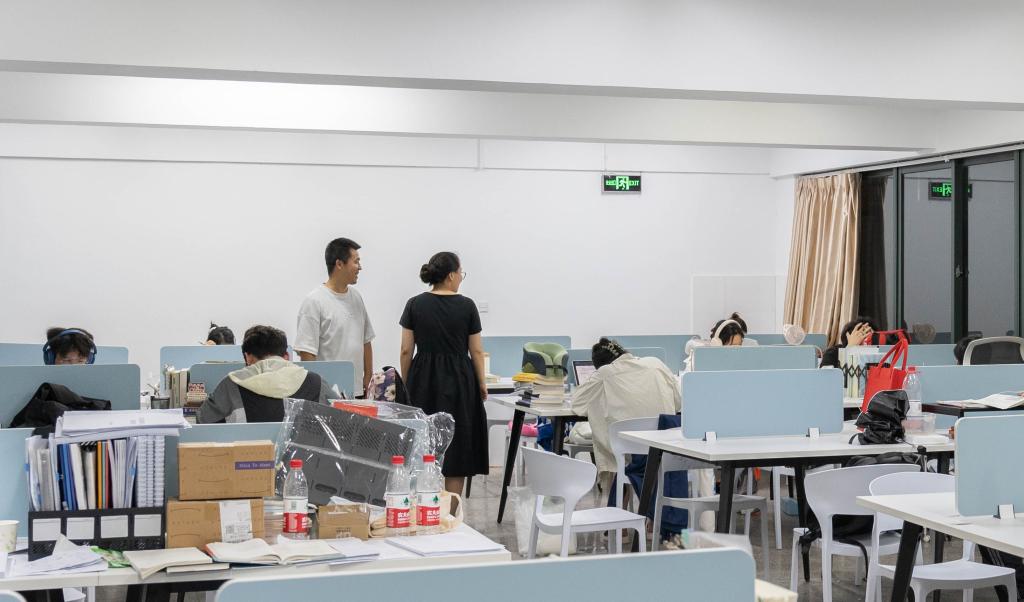 随后,高阳一行来到了考研教室,看望积极备考的员工们。K8考研教室位于K8“YAO你来”员工社区,于暑假正式投入使用,整洁清新的教室环境、浓郁热烈的的学习氛围,是员工学习的好去处,吸引了不少留校考研考公的员工。