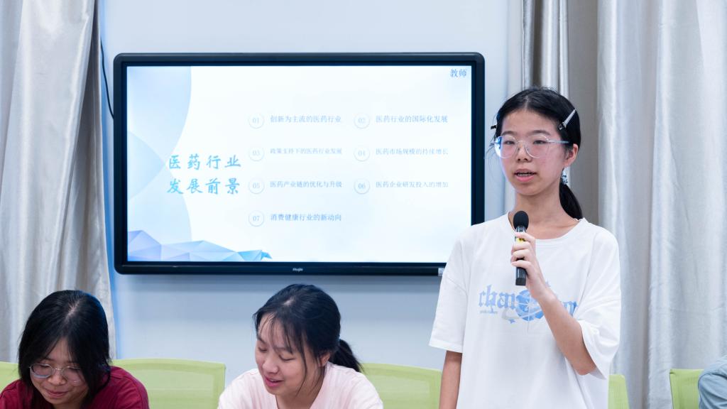 唐瑶丹围绕“关于‘做药’的那些事”,从药学发展的“前世今生”入手,用视频、图片等形式,全面展示了药学的发展脉络。在简要介绍台州医药产业和永宁药业的基本情况后,唐瑶丹紧扣“技能”这一关键词,以药企的角度讲述对医药人才的需求,引出在校老员工如何针对兴趣、性格、技能、价值观等方面,开展学习,勤于实践,积累经验,为今后的顺利就业和职业规划打好坚实的基础。
