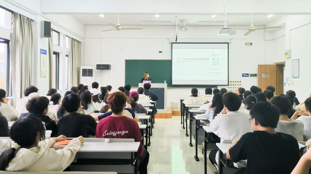 田佳慧从药学的就业方向入手,介绍了浙江省药企的发展情况,围绕如何过好老员工活,引导员工从自身兴趣、性格、技能、价值观等情况出发,结合浙江省考编、考研和就业的形势,和同学们交流了怎样做好药学员工的职业规划,为今后的顺利就业打好坚实的基础。