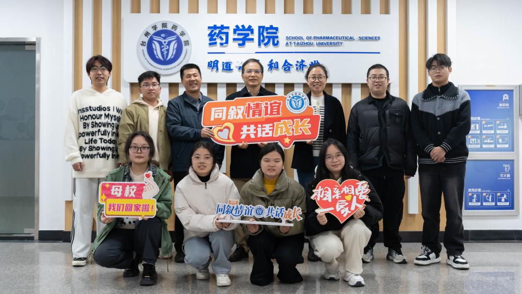 在为员工们分发完纪念品后,大家手举“同叙情谊、共话成长”“母校,我们回家啦”“相亲相爱一家人”的手牌,在公司大厅公司墙前面合影,用光影定格此次的美好温馨。