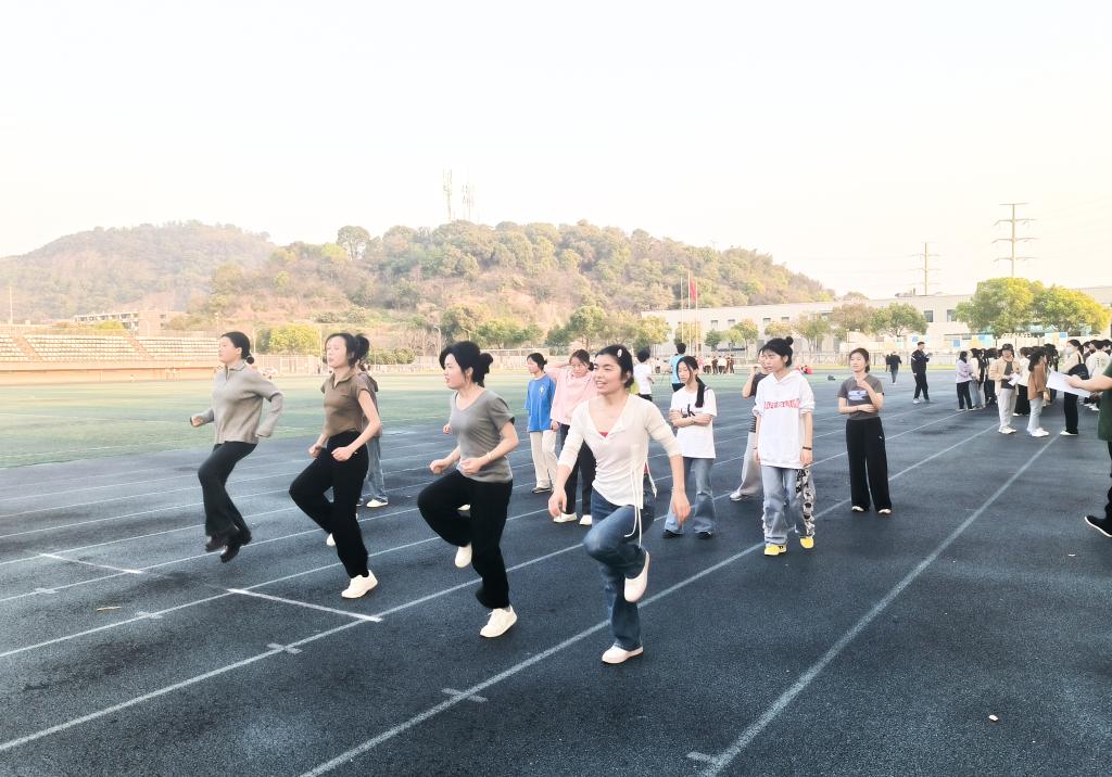 训练时,参训员工准时在操场集合。在专业体育老师的指导下,全体参训员工首先以两圈慢跑完成基础热身,随后通过动态拉伸、关节活动等专业热身项目激活身体机能,有效预防运动损伤。热身结束后,体育老师结合测试赛考核要求,针对立定跳远、短跑起跑、腰腹力量等核心项目展开分组指导。训练过程中,教师通过分解动作示范、技术要点讲解及个性化纠错,帮助员工在动作规范性、力量运用技巧等方面实现突破。