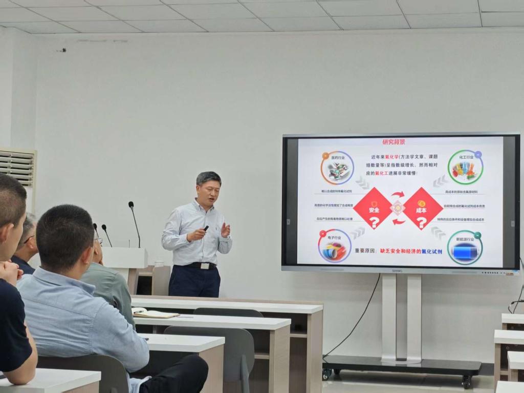 第19期活动中,易文斌教授分享了关于三氟甲基亚磺酸钠(NaSO2CF3)的研究成果。三氟甲基亚磺酸钠(NaSO2CF3)作为一种结构简单、元素丰富的成熟的工业品,具有性状稳定、易于操作、成本低等优势。近年来,易文斌教授围绕三氟甲基亚磺酸盐还原调控中的基础科学问题,实现了三氟甲基亚磺酸根从“脱硫氧化”到“脱氧还原”的转变,揭示了亚磺酸盐脱氧还原机制,逐步形成了NaSO2CF3还原构建有机功能分子的学术研究体系,并展示了课题组在该领域的一系列高水平研究成果。