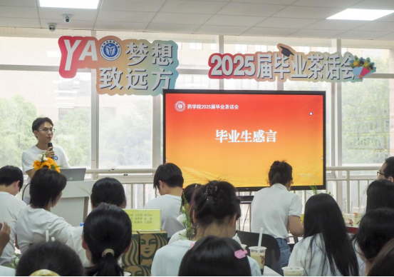 茶话会在“YAO梦想 致远方”毕业视频中拉开帷幕。视频中,有来自毕业学子们美好的记忆,来自各年级学弟学妹们最衷心的祝福,也有师长对毕业生们的肯定、不舍与祝愿。每一帧画面都如同一把钥匙,打开了毕业生们记忆的宝盒,展现出他们奋斗追梦的每一个瞬间。