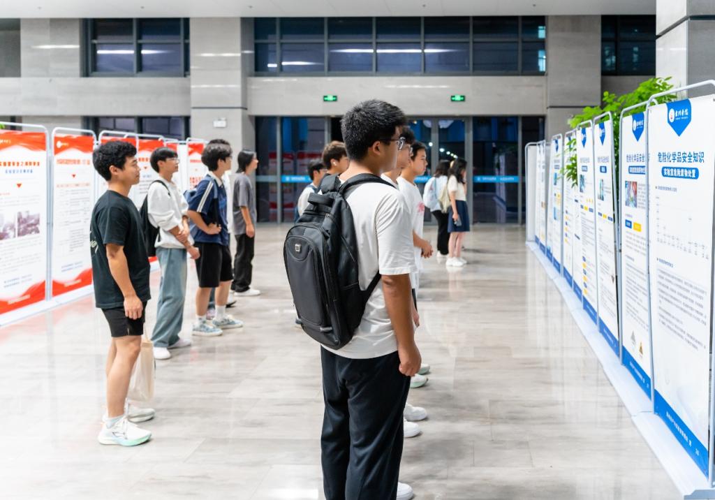 本次活动以丰富的实验室安全知识宣传展板为核心,内容涵盖了实验室管理规章制度、精密仪器的正确操作流程、应急事件的处理标准流程、消防安全常识、电力使用安全规范以及急救知识等多个维度。2025级新生以班级集体形式积极参与,指导老师通过详尽讲解,揭示了实验室中潜在的各类风险源(如化学品、废弃物处理、水电安全、机械设备及辐射等)及其防范策略,并引用众多实验室安全案例进行警示教育,旨在全方位、深入地提升员工们对实验室安全相关知识与技能的掌握程度,切实增强他们的应急处理能力,进而有效压缩安全事故的发生空间。