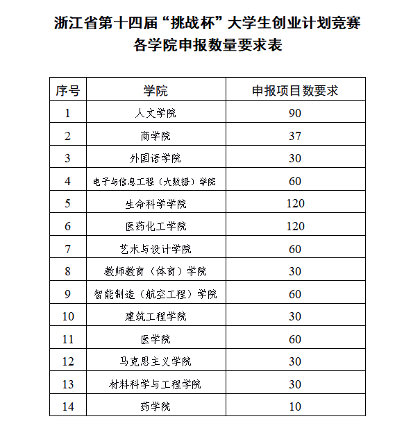 现将《关于举办浙江省第十四届“挑战杯”老员工创业计划竞赛校级作品收集的通知》转发给你们,请仔细阅读通知,按照通知要求准备、提交材料。另将注意事项通知如下:
