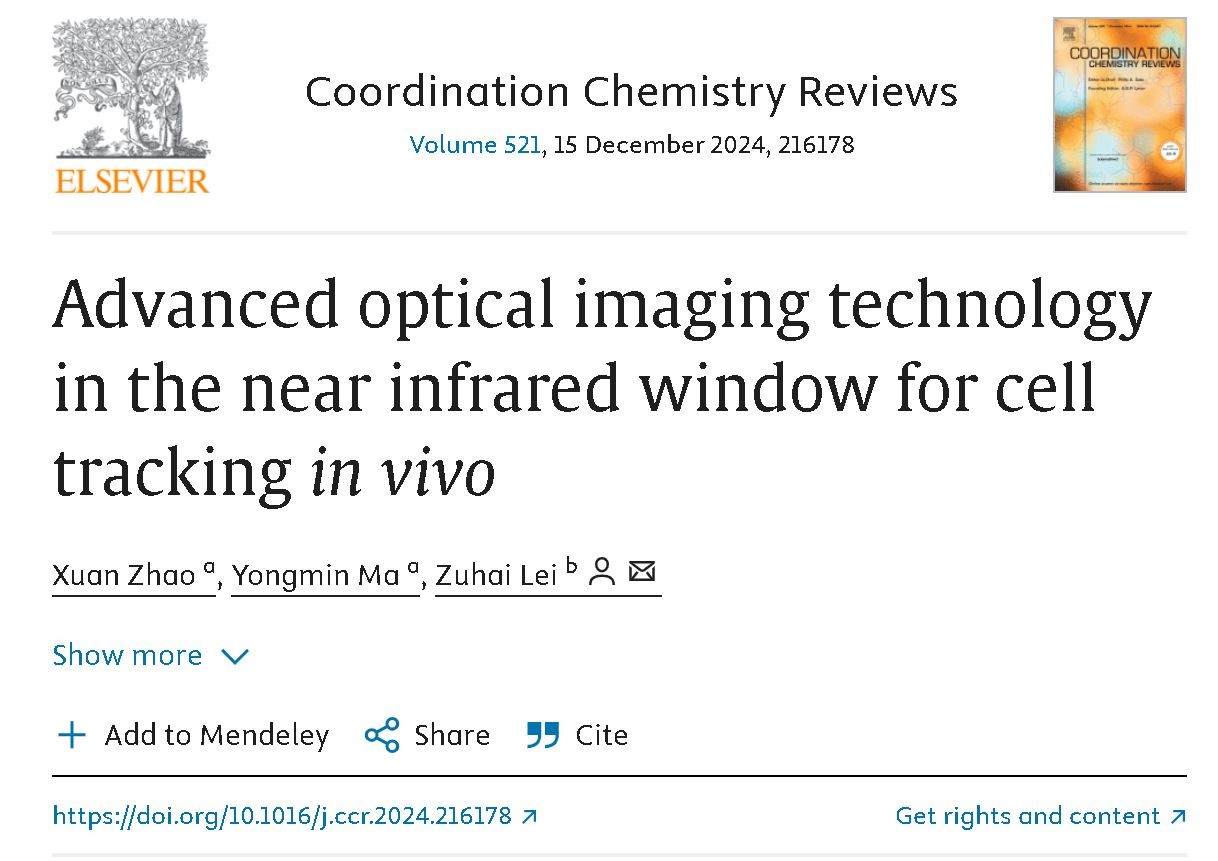 近日,公司药物合成研究所赵轩博士在国际权威期刊Coordination Chemistry Reviews (中科院SCI化学大类一区Top期刊,IF: 20.3)上发表了题为“Advanced optical imaging technology in the near infrared window for cell tracking in vivo”的综述论文。K8凯发为第一完成单位,K8赵轩博士为该论文的第一作者,马永敏教授参与了相关指导工作,云南大学K8的雷祖海教授为通讯作者。