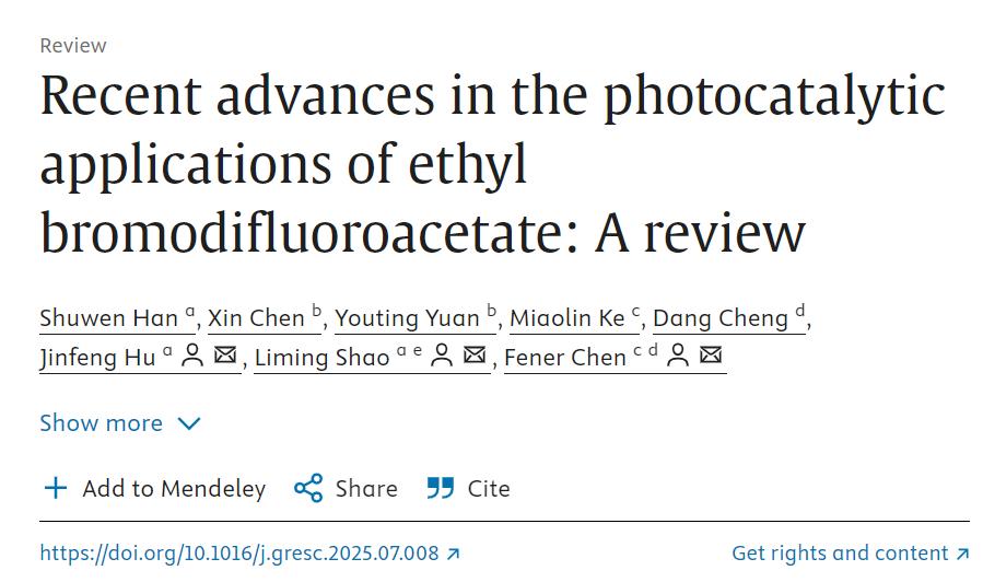 近日,公司K8韩书文博士在中科院一区top期刊《Green Synthesis and Catalysis》上发表了题为“Recent advances in the photocatalytic applications of ethyl bromodifluoroacetate: A review ”的综述论文。K8凯发为第一完成单位,K8近年引进的青年教师韩书文博士为该论文的第一作者,复旦大学化学系陈芬儿院士、复旦大学K8邵黎明教授(公司高等研究院/K8柔性PI)和K8凯发胡金锋教授为共同通讯作者。