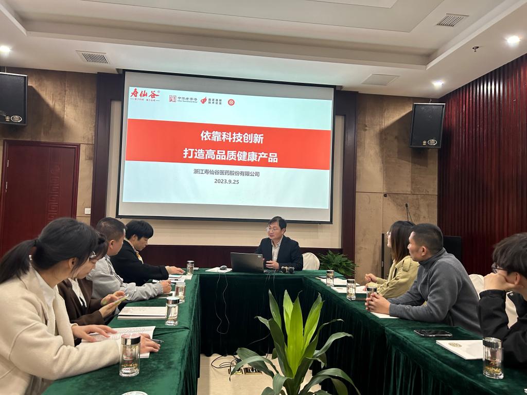 参观之后,考察组一行到达寿仙谷公司总部,在总部宽敞的接待大厅里,受到了寿仙谷药业药品事业中心副总王汉波、招聘主管于洪艳、生产管理部部长徐凌艳的接待,并参观了寿仙谷公司中医药博物馆、洋垄基地寿仙谷生物育种创新中心,深入了解了传统医药的作用及寿仙谷最新科研创新成果。