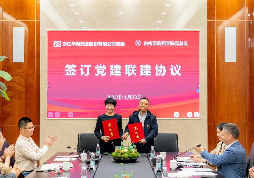 为深入学习贯彻党的二十大精神,进一步深化产教融合,以高质量党建促进公司高质量发展,11月23日下午,公司党总支联合浙江华海药业股份有限公司党委开展党建联建联学活动。公司党总支书记张梅芬和浙江华海药业股份有限公司党委书记、常务副总裁、华海技术公司董事长郭斯嘉共同签订了校企党建联建协议。活动由华海技术公司副董事长刘创伟主持。