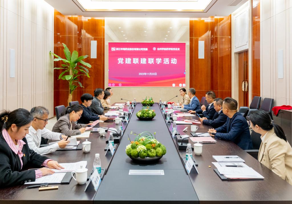 郭斯嘉对公司党政班子一行的到来表示热烈欢迎,并从“以人品创造产品”“以创新推动发展”“以品质塑造未来”三方面介绍了华海药业的基本情况。他表示,2004年6月8日,时任浙江省委书记习近平同志调研华海药业时指出,华海在原有的基础上要能够更进一步, 把医药产业做大做强,挺进国际医药市场,把华海发展得更加壮大,为社会作出更大的贡献。19年来,华海药业在总书记重要指示精神引领下,从2004年开始坚定不移地实施制剂国际化战略,走上了一条与国际接轨、具有高效研发能力的发展之路。他表示,要深入贯彻落实习近平总书记的重要指示精神,通过此次党建联建,在科技创新、人才输送等方面加强交流合作,共同推进医药产业的蓬勃发展。