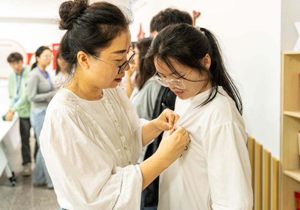 仪式在激昂的团歌中拉开帷幕。分团委书记姚卓琳宣读新发展团员名单。高阳为新团员代表佩戴团徽并颁发团员证。