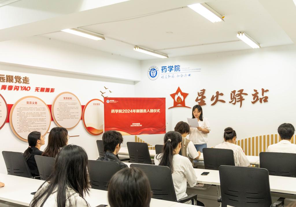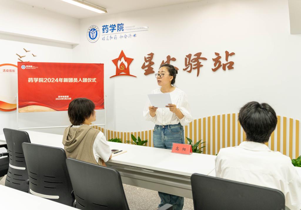 21生物制药班的杨梦瑶同学作为老团员代表发言,她表示成为一名共青团员应当更加严格要求自己,履行好一名团员的责任和义务。23生物制药班的谢郅鹏同学代表全体新团员发言,他谈到加入共青团是光荣的,我们要继续以团员的标准严格要求自己,不断学习,积极进取,为实现社会发展贡献青春力量。