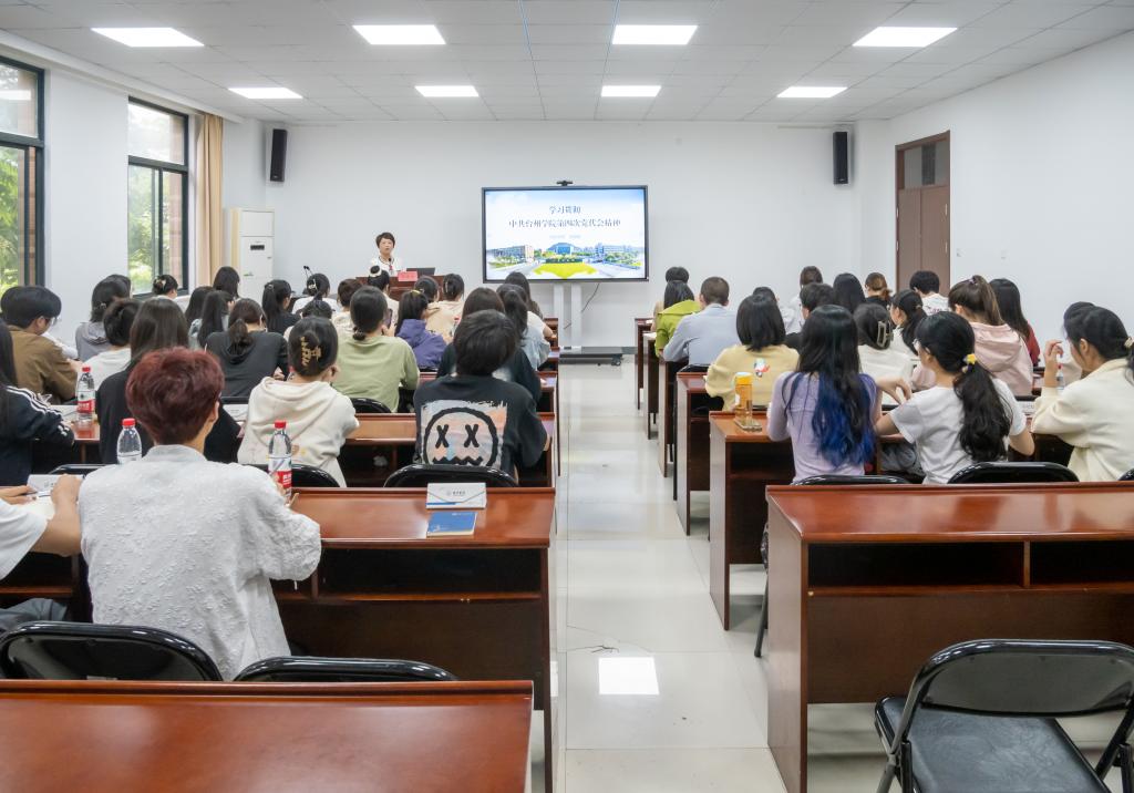 吴银银首先对公司第四次党代会的基本情况做了简要介绍,重点传达台州市委书记李跃旗在大会上的重要讲话和党代会报告精神,并从报告标题、大会主题、过去五年工作、公司使命、发展愿景、发展目标、发展战略、任务举措、党的建设等九个方面进行了深入详细的解读,带领师生悟深吃透党代会精神。