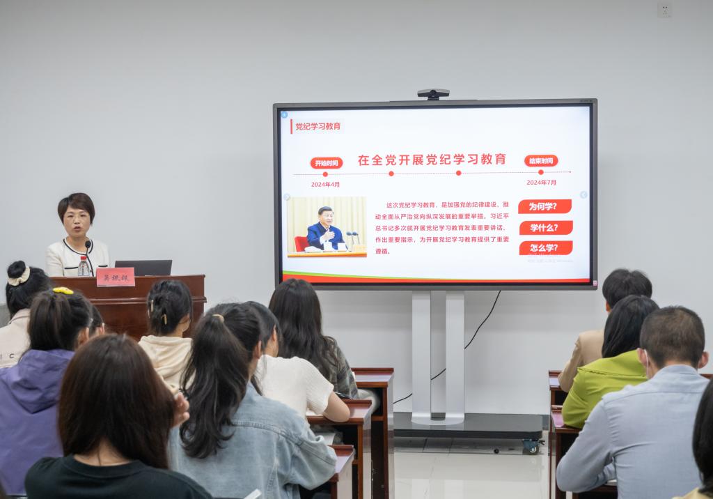 同时,她还通过聚焦“为何学?”“学什么?”“怎么学?”,从“严明政治纪律和政治规矩”、“加强全方位管理和经常性监督”、“引导激励党员干部敢于担当、积极作为”、“坚持党性党风党纪一起抓”、“促进执纪执法贯通”等五个方面,对党纪学习教育进行了详细解读。要求全体学员要以党员标准严格要求自己,做到学纪知纪明纪守纪,更好地肩负起新时代的历史使命,为公司事业发展贡献智慧和力量。