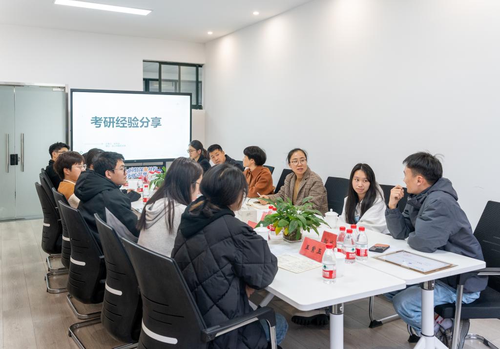 下午的“研岸一路行”考研交流会上,公司聘任5位成功考取研究生的员工为考研助航员,每位助航员结对1-2名在读考研学子,为他们提供信息咨询、给予提醒与鼓励,帮助他们在“研海”上勇毅航行,成功上岸。会上,考研助航员们分享了当初备战、应战等考研经历、经验,对大三的学弟学妹们提出的问题也作了详细解答和交流。现场气氛热烈、其乐融融。