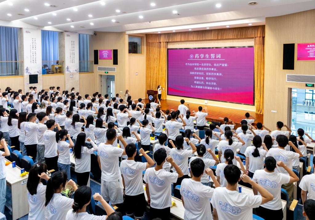 全体新生在高阳的带领下郑重宣誓,“……崇德至善,勤学笃行,明道弘药,和合济世,为人类健康与幸福奋斗终生!”誓言铿锵有力,直击人心。