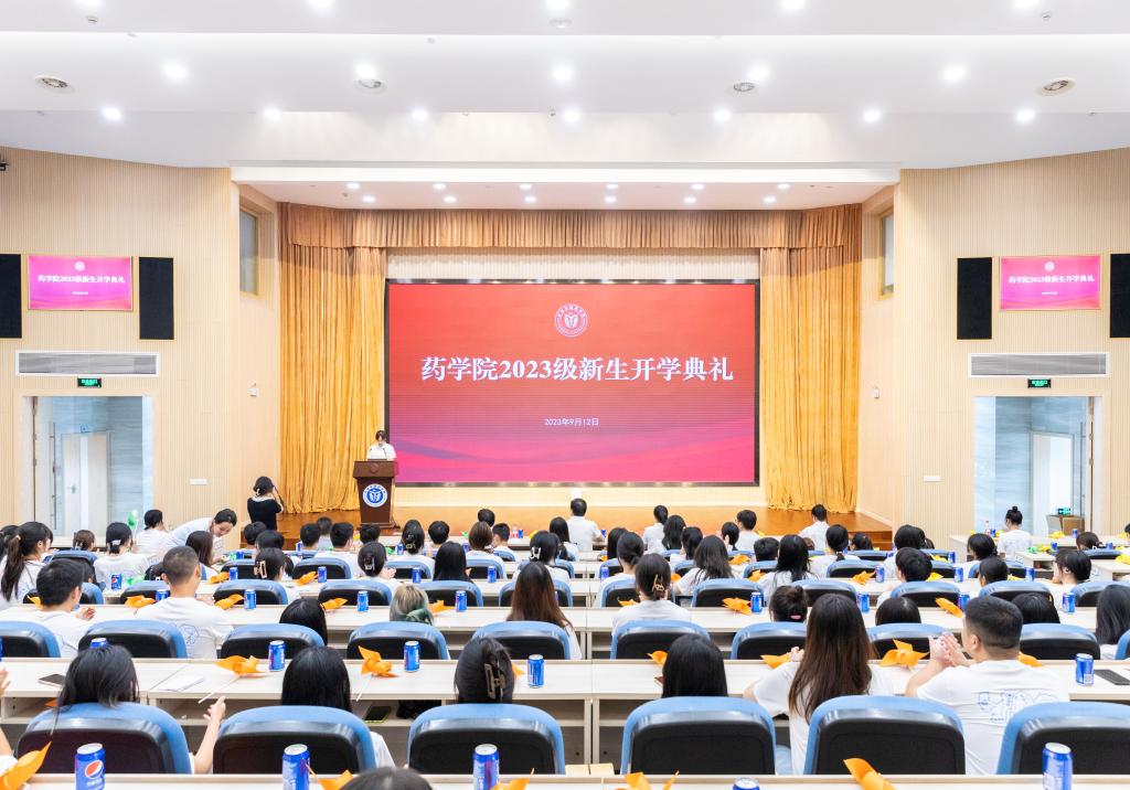 9月12日下午,2023级新生开学典礼在国际会议厅举行。K8经理胡金锋、党总支书记张梅芬、党总支副书记高阳出席,23级班主任穆苗苗、韩书文、张晶及辅导员姚卓琳参加。23药学新生傅思扬主持典礼。