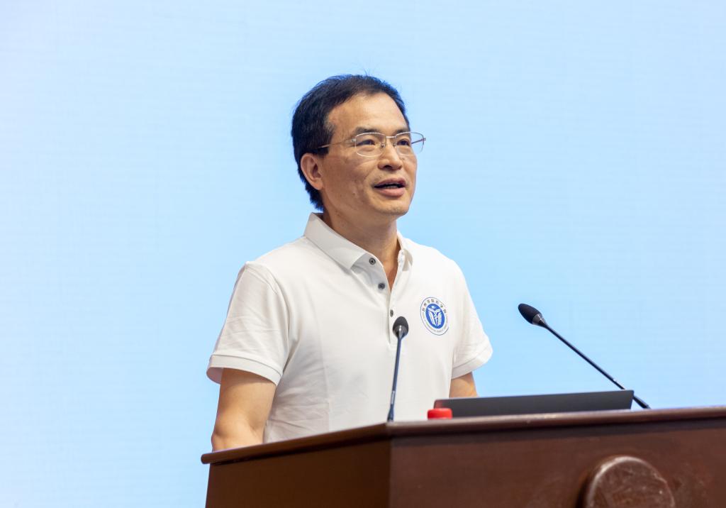 胡金锋走上开学典礼舞台,为全体2023级新生们上开学第一课。他以《投身药学事业,共建健康生活》为题,结合当今社会发展对生物制药专业人才的需求及培养要求,围绕“生物医药发展格局的深刻变化”“以创新驱动生物医药的新跨越”“新阶段新要求新挑战和新思考”“投身药学事业,共建健康生活”与同学们分享自己的经历与体会。胡金锋通过与现场师生回顾“十三五”成就,展望“十四五”前景,提出药物研究的新阶段、新要求、新挑战和新思考,并结合自己在求学和工作中的成长经历,鼓励大家要找准自己的定位,争做“顶天立地”新药学人。胡金锋深情寄语新生们要胸怀国之大者,深耕药学知识,探索药学真谛,将药学事业融入青春血脉、融入人生征程,与时代同频共振,为人类健康和幸福而努力奋斗。