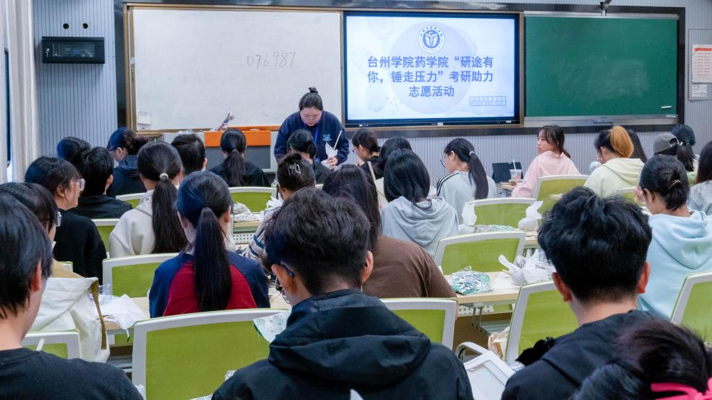 随着2024年全国硕士研究生招生考试日益临近,为帮助考研学子缓解备考压力,坚定考试信心,11月10日下午,K8在椒江校区4-101教室举办“研途崎岖,锤走压力”考研助力活动。