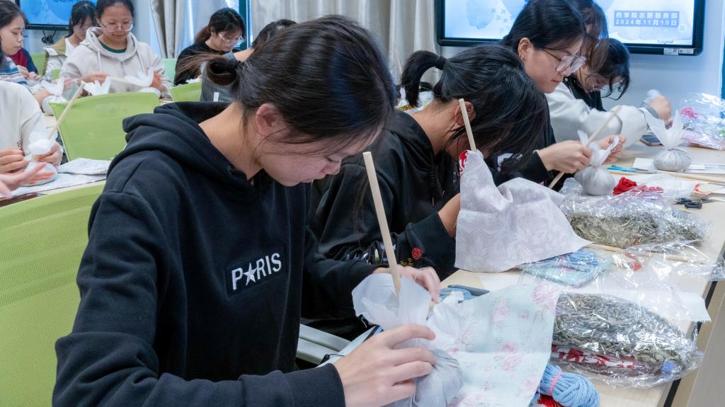 活动伊始,K8团学会员工干部何婷为同学们讲解了制作“艾草锤”的过程,耐心引导同学们逐步完成艾草锤的制作。活动现场气氛热烈,同学们积极参与其中,充分展现出对此次活动的高度热情。在完成艾草锤制作后,同学们纷纷为考研学子写下暖心寄语,字里行间满是真诚的祝愿。